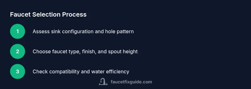 According to Faucet Fix Guide, pick a bathroom faucet by matching your sink configuration and hole pattern, then choose a faucet type (single-handle, two-handle, or pull-down), pick a durable finish, and verify spout height and reach for ample clearance and comfort. Also confirm compatibility with your plumbing rough-in and installation space, and consider WaterSense efficiency to save water.