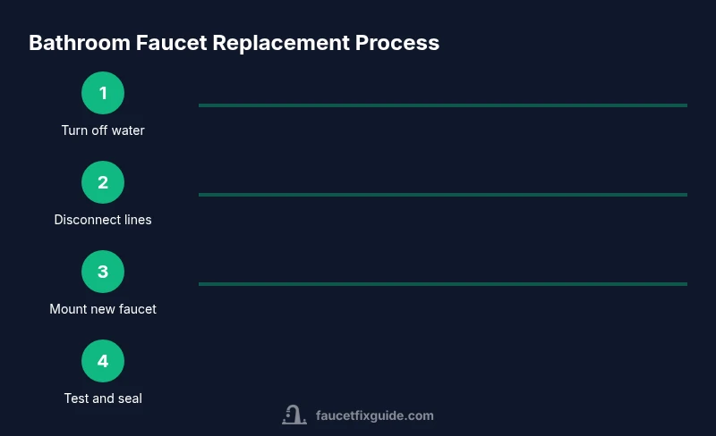 According to Faucet Fix Guide, replacing a bathroom faucet is a common DIY project that can improve water efficiency, reduce leaks, and update the look of a vanity. The process is straightforward when you understand the basic anatomy: the sink mounting, the faucet body, the handles or controls, the supply lines, and the aerator. When you start, you’ll decide between a widespread or center-set faucet based on your sink holes and deck space. Knowing the pros and cons of cartridge, compression, or disc faucets helps you pick a model that fits your budget and usage. For most homes, the replacement takes a few hours from shut-off to leak test, but preparation and patience pay off with a faultless fit and a lasting seal. The primary goal is a secure mount, clean connections, and a watertight finish, so plan to inspect for drips after the first test run. Replacing a bathroom faucet is a practical upgrade that homeowners often achieve with basic tools and a careful approach. The Faucet Fix Guide team emphasizes following manufacturer instructions for best results.