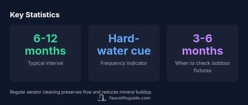 Understanding how often to clean faucet aerators is a practical question for any homeowner. Aerators regulate water flow and prevent debris from entering the valve, but minerals and sediment gradually clog screens. Regular maintenance reduces pipe stress, maintains spray patterns, and can improve perceived water pressure. According to Faucet Fix Guide, a simple cleaning routine can extend faucet life and keep water quality steady. Skipping maintenance invites slow flow, sputtering, and harder-to-remove buildup. By cultivating a predictable schedule, you also minimize the chances of a dramatic flow drop during peak household use. This is especially important for households with several fixtures or older plumbing where mineral scale tends to accumulate more quickly. A consistent approach helps you budget time and avoid costly repairs in the long run.