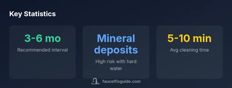 According to Faucet Fix Guide, regular maintenance of faucet heads matters more than most people realize. Understanding how often to clean faucet head is essential for homeowners and DIYers who want steady water flow, clean spray patterns, and resilient fixtures. A small investment in routine care now can prevent clogs, mineral buildup, and corrosion that force expensive repairs later. Faucets in kitchens and bathrooms are exposed to mineral-rich water, soap scum, and mineral particles that gradually degrade aerator screens and flow restrictors. In addition, occasional leaks at the faucet head can mask underlying issues such as worn cartridges or improper seating. By establishing a practical cleaning cadence tailored to your water quality and usage, you reduce surprise breakdowns and keep the faucet functioning as designed. This guide uses straightforward steps, safe household cleaners, and economist-friendly practices to help you decide an appropriate frequency and execute effective cleanings without professional help.