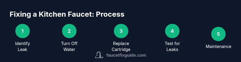 A kitchen faucet can leak from the spout, base, or under the sink when components wear, gaskets dry out, or mineral buildup occurs. The key to a successful repair is matching the symptom to the likely part. Drips when the water is on often point to worn cartridges or O-rings; a stiff handle or misaligned spout can indicate worn valve seats or a loose mounting nut. By recognizing the root cause, you can decide whether a cartridge replacement, seal replacement, or valve upgrade is needed. According to Faucet Fix Guide, a methodical approach saves time and reduces the chance of causing collateral damage. Start with clear notes on when the leak happens, the faucet style, and any unusual sounds, then plan your repair around the valve design. This perspective keeps your DIY effort focused, safe, and more likely to succeed in homes with older plumbing.