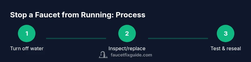 A faucet that won’t stay quiet is more than a nuisance—it wastes water and can signal worn parts. In this guide you’ll learn how to stop a faucet from running by identifying the type of valve and the likely causes, so you can apply the right fix the first time. According to Faucet Fix Guide Team, most running faucets come from worn washers, damaged cartridges, or degraded seals. Recognizing whether you have a compression, cartridge, or ball faucet helps you target the right replacement parts quickly. The goal is to restore a tight seal, stop water flow when the valve is off, and avoid further wear. Mineral buildup from hard water can also force valves to stay open, so expect mineral deposits to require cleaning as part of the fix. This section sets the foundation for practical repair work you can do safely in your home.
