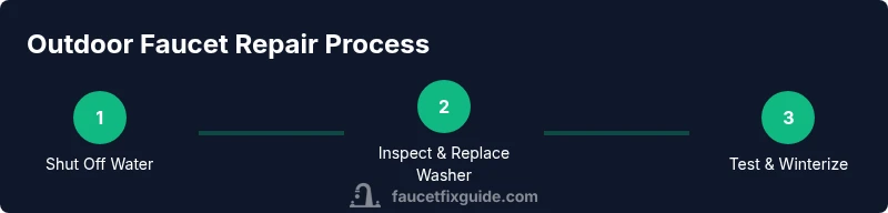 An outside water faucet, also known as a hose bib or spigot, is the point where your home’s plumbing meets the outdoor environment. Over time, exposure to sun, rain, and freezing temperatures can cause wear that leads to leaks, drips, or difficult operation. If you’re experiencing a wet spigot or a handle that won’t shut off, you’re dealing with an outside water faucet repair scenario. According to Faucet Fix Guide, outdoor faucets face weather exposure that accelerates wear and can turn simple fixes into a bigger job if neglected. Common failure modes include worn packing washers, corroded stems, loose connections at the hose bib neck, and ice damage from freezing weather. Understanding these failure modes helps you choose the right repair approach, whether you’re replacing a washer, reseating a stem, or upgrading to a frost-free model for cold climates. This article will guide you through safe diagnosis, tool selection, step-by-step repairs, and preventive maintenance to keep your outdoor faucet turning smoothly and stop wasteful leaks.
