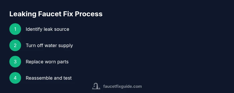 A faucet leak is more than a nuisance; it can waste water and raise utility bills if left unchecked. According to Faucet Fix Guide, the quickest path to a drip-free faucet is to identify the leak source, safely shut off water, and prepare for a targeted repair. In 2026, this guidance remains essential for homeowners, renters, and DIY enthusiasts who want clear, practical guidance. Leaks most often come from worn cartridge assemblies, corroded washers, or damaged O-rings, but the exact fix depends on faucet type (compression, ball, cartridge, or ceramic disk). Start by observing where the water is escaping and how it behaves—this helps narrow down the cause and the right replacement parts. By following the steps outlined here, you can reduce water waste and avoid expensive emergency repairs.