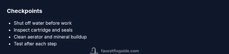 As you work, note any differences between hot and cold sides. If only one side is affected, the issue likely resides in a single-side cartridge or stem. If both sides are affected, consider valve assembly problems or supply-line constraints. The Faucet Fix Guide Team notes that diagnosing flow problems accurately saves time and prevents unnecessary replacements.