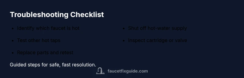 According to Faucet Fix Guide, the fastest fix for a hot faucet is to shut off the hot-water supply at the fixture or main valve and test other taps to confirm if the problem is isolated. In most homes, a misadjusted cartridge or valve causes the issue, not the heater. This early step prevents scalding while you diagnose and gives you time to assess whether a simple repair is enough.