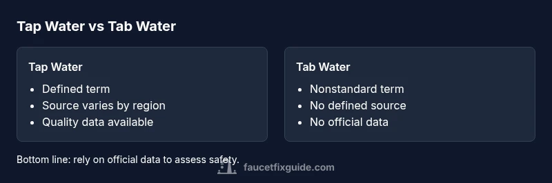 If you’ve ever asked yourself is it tap or tab water, you’re not alone. For homeowners, the term that matters is the water that comes from your faucet. In plumbing and public health, the standard term is tap water. The phrase tab water is not a recognized technical term and often results from typos, autocorrect, or regional slang. According to Faucet Fix Guide, clarity begins with using the correct term and focusing on water quality rather than labels. This primer lays the groundwork for evaluating what you drink and use daily. You’ll learn how municipal supply and well water affect what you call your faucet water, how to access official water quality data, and practical steps to maintain safety and taste.