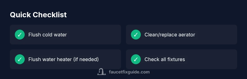 Yellow water at the faucet is a signal that something in your plumbing is releasing color into the stream. According to Faucet Fix Guide, most yellow water is not an immediate health hazard, but it can indicate rust from aging pipes, sediment from the supply line, or mineral buildup inside the faucet or aerator. If discoloration appears after plumbing work, it may be temporary and clear after flushing. For homeowners, this is a cue to perform quick tests at the tap, not to panic. Following a structured approach helps you determine whether this is a minor nuisance or a sign of a bigger issue. The goal is to restore clear water quickly while avoiding any unnecessary risk.